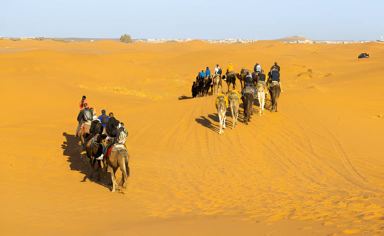 Desert: Arrive at desert land, Camel ride crossing the dunes with beautiful sunsets and sunrises spend the night in luxury camp