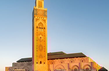 Casablanca is Morocco’s largest city, known for its modern spirit, coastal beauty, and iconic architecture. Discover the impressive Hassan II Mosque, one of the largest mosques in the world, perched dramatically over the Atlantic Ocean. Explore the elegant Art Deco architecture, stroll along the lively Corniche, and enjoy the vibrant cafés and restaurants of this cosmopolitan hub.