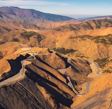 Montañas del Anti Atlas Continúe por el Anti-Atlas, conocido por sus colinas rocosas y carreteras sinuosas
