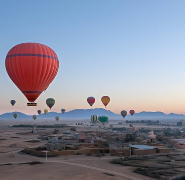 Enjoy a breathtaking hot air balloon ride over Marrakech and the surrounding Atlas Mountains. Float peacefully at sunrise, taking in panoramic views of the city’s ancient medina, palm groves, and desert landscapes. The adventure ends with a traditional Moroccan breakfast—an unforgettable way to see Marrakech from above