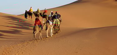 Take a camel trek across the dunes of Erg Chebbi at sunset